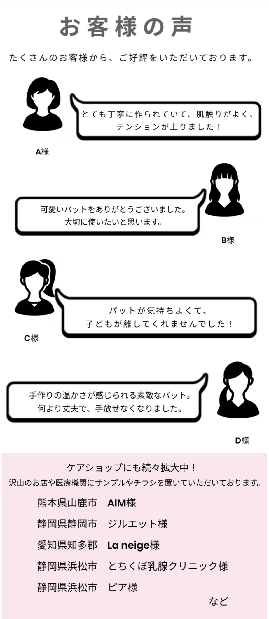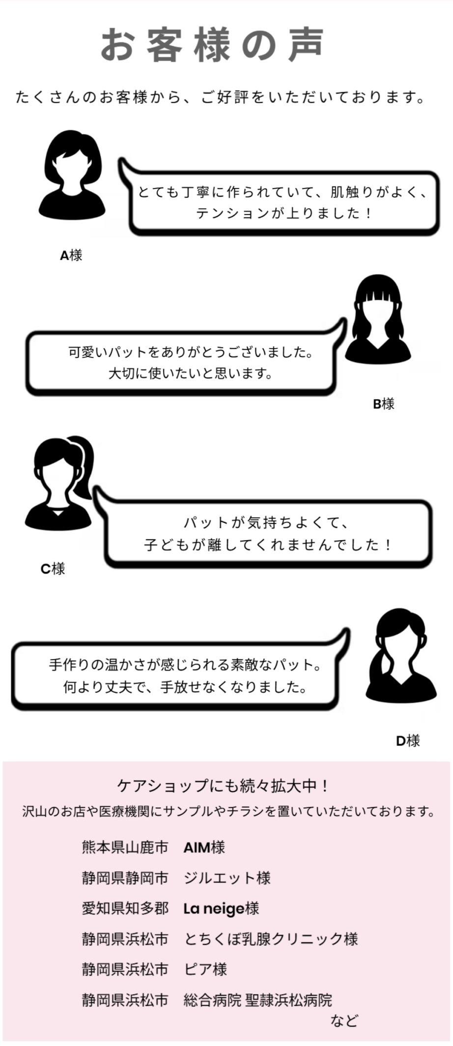 また、ケアショップでの販売もしています。